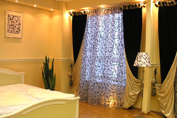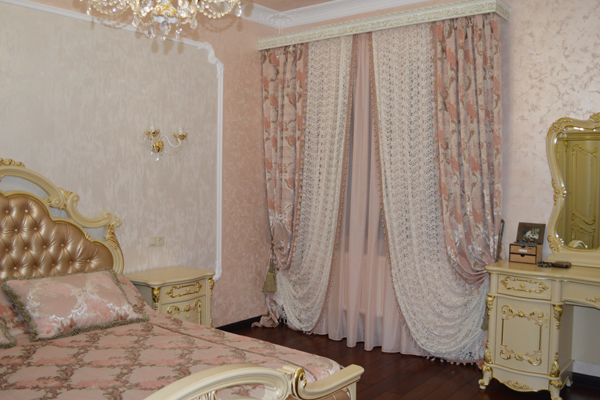 Спальня - комната для сна и отдыха. Это мягкие драпировки, спокойные оттенки, возможность отгородиться от внешнего мира. Поэтому шторы для спальни должны быть в достаточной степени функциональны. Многие клиенты заказывают шторы для спальни с ламбрекенами. Если это отвечает стилю спальни, то почему бы и нет. И вот тут на помощь приходит опыт дизайнера – «не навреди».